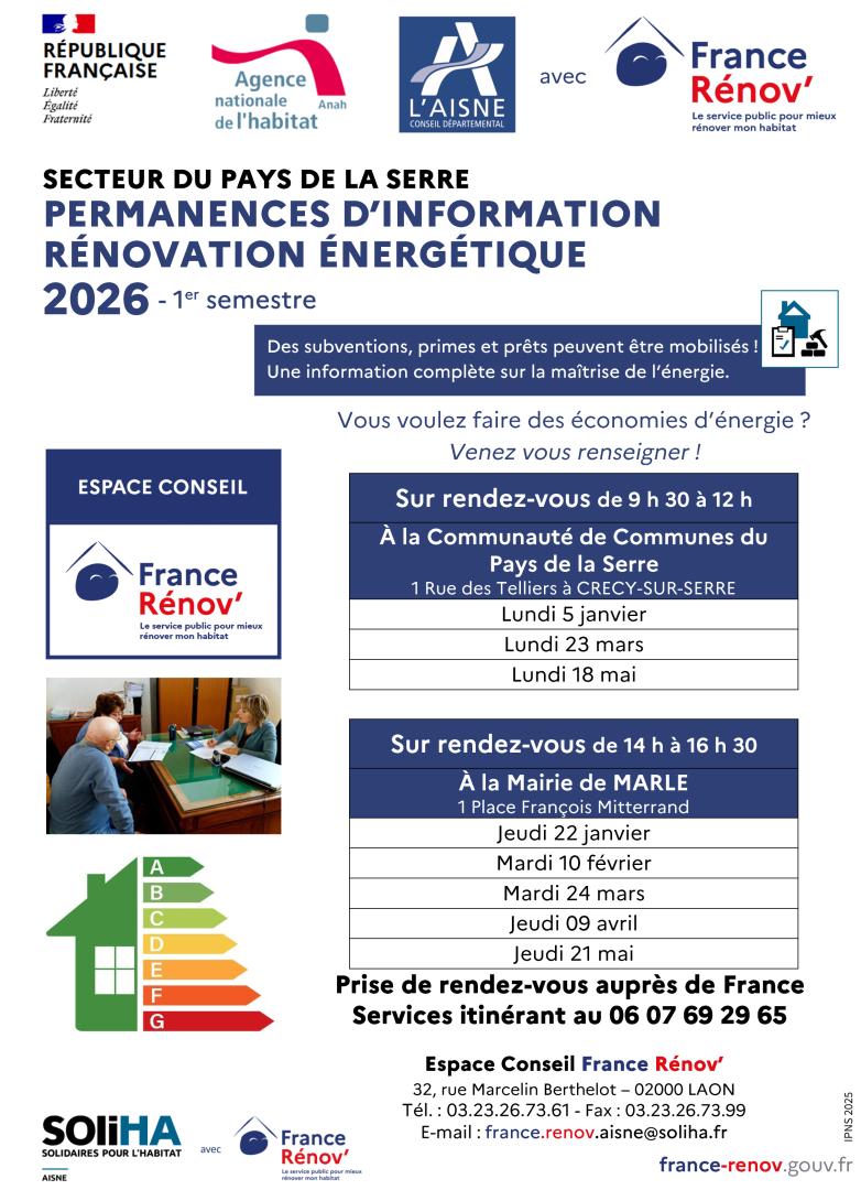 1, Place François Mitterrand - 02250 MARLE : 03 23 21 75 75